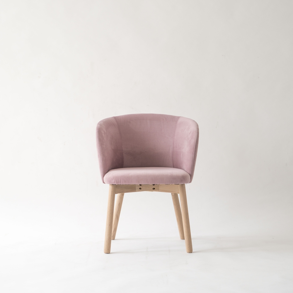 椅子のカラーバリエーションはピンク・グレーの全2色。北欧の色遣いを意識しつつ、日本でも日常に取り入れやすい色を選びました。