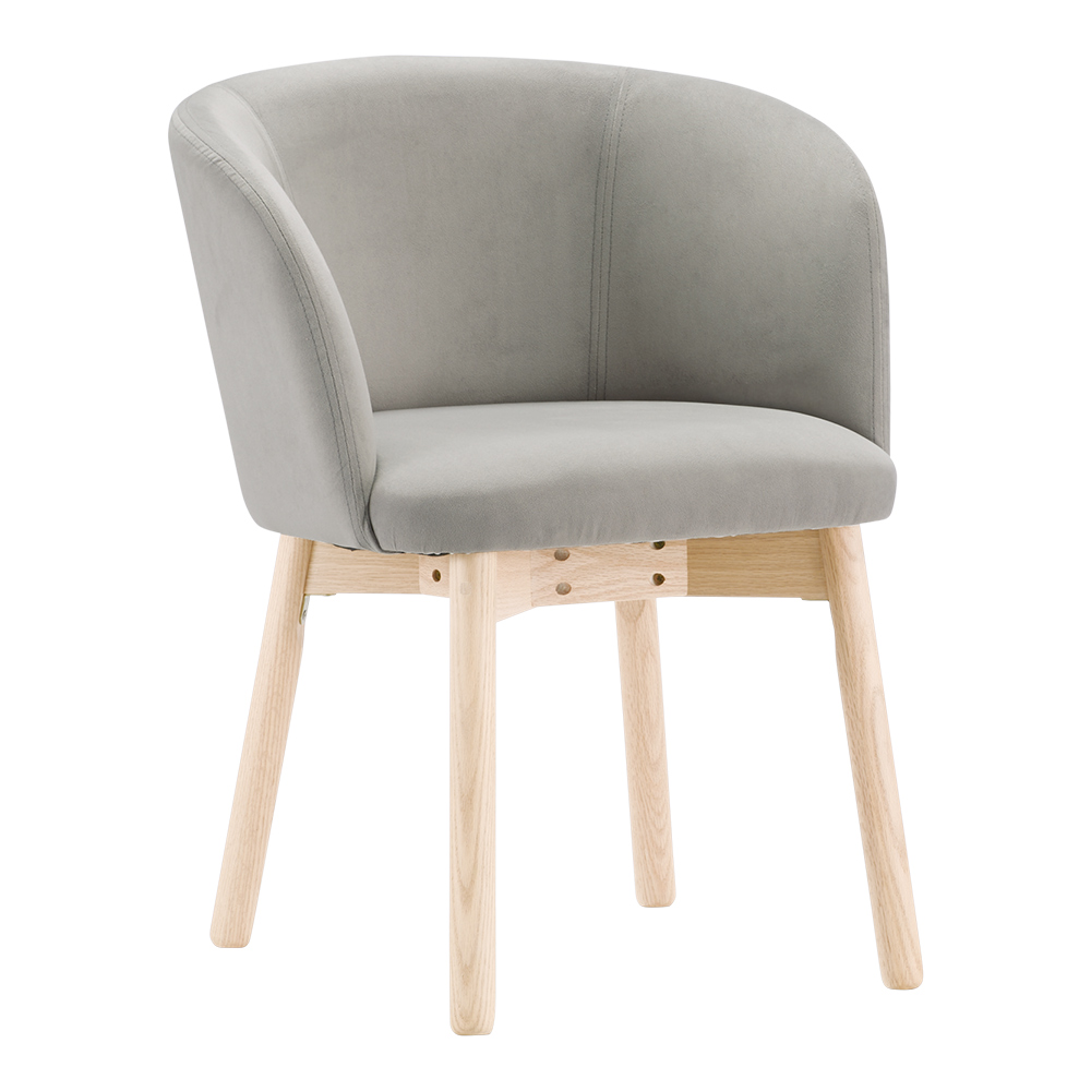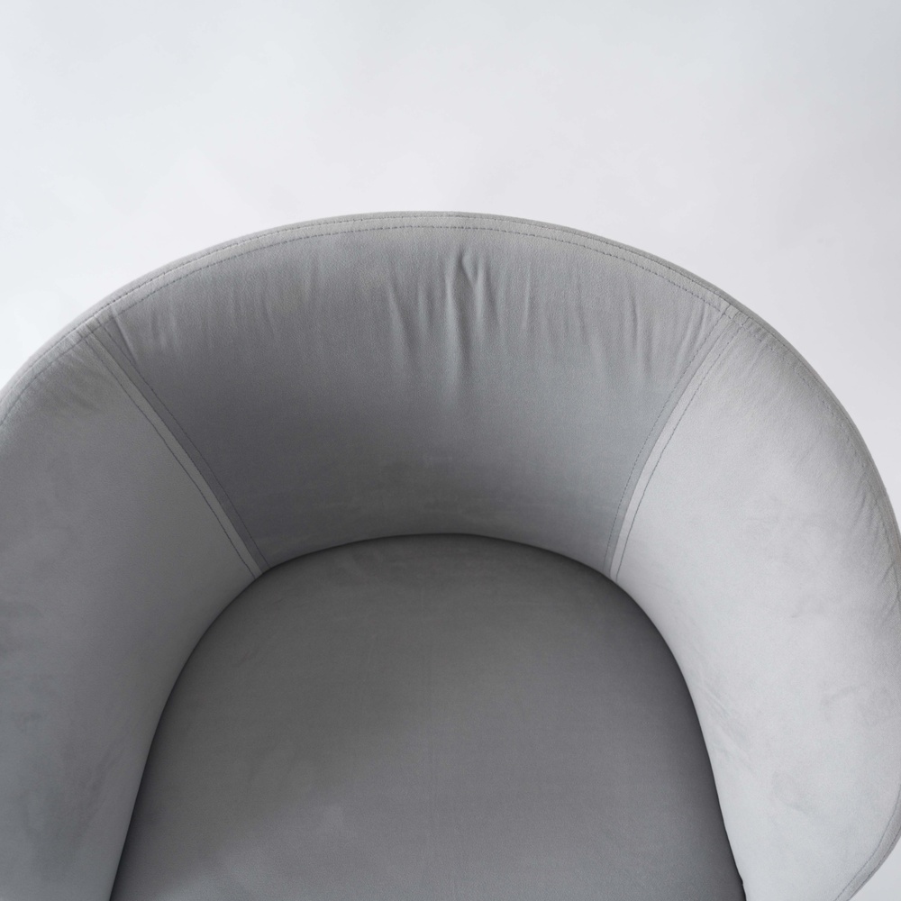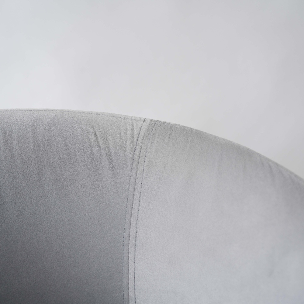 (イ)ライトグレー 柔らかい丸みのあるシルエット。肌触り滑らかで、光沢のあるベロア生地。グレーは圧迫感を感じさせない淡いトーン。