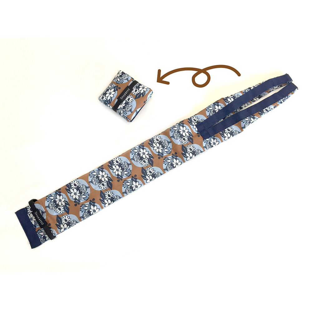 両端を引っ張ると一瞬で帯状に。そのまま折って丸めれば簡単にコンパクトに。