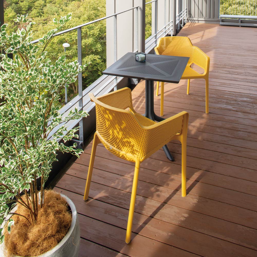 コーディネート例※お届けはテーブル+アームチェア2脚組です。 イタリアのデザイナーズブランド発。軽く、汚れに強く、お手入れしやすい!