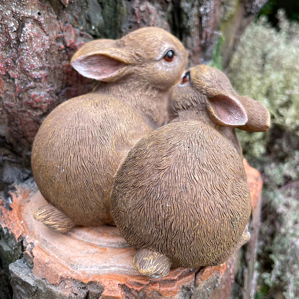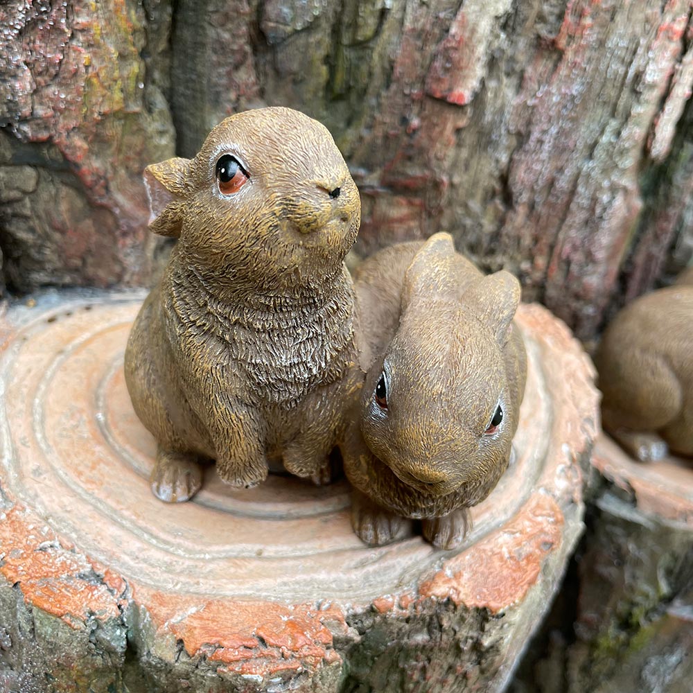 本物かと見間違えそうなリアルな切り株のプランター、寄り添って甘える親子ウサギ。ほっと心和むシーンを演出します。