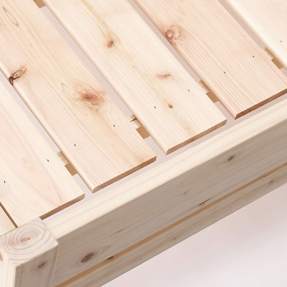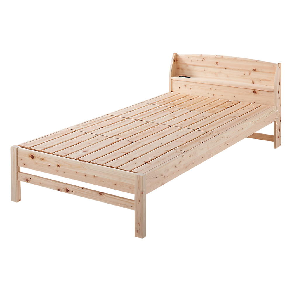 国産のひのき天然木を使用した国内一貫生産のひのきベッドフレームフレームもすのこ板部もひのき天然木を使用しました。すのこ板は4分割仕様です。(すのこ板の桟木は強度を保つため積層合板を使用)