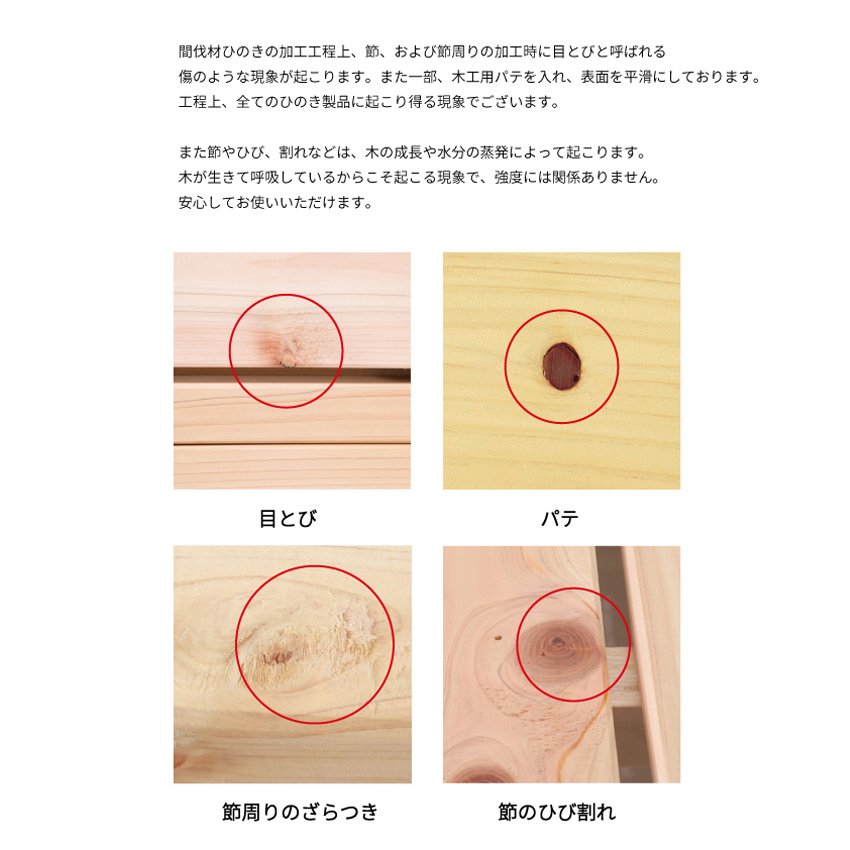 • 島根・四万十産ひのき天然木の風合いと香りが生きています。