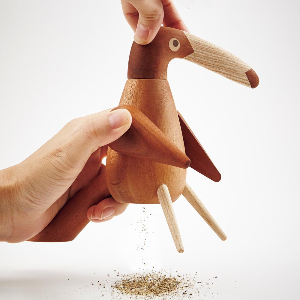 • 首をくるくる回して挽くユニークな仕様。(※写真はペッパーミル バード)