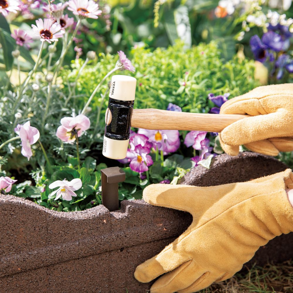 花壇をつくりやすいサイズ&厚みで、ぐにゃりと自由な方向に曲げられます。ペグで地面に固定して土を入れるだけで花壇が完成。ラバー素材なのでプラスチックより質感があり木製より長持ち。