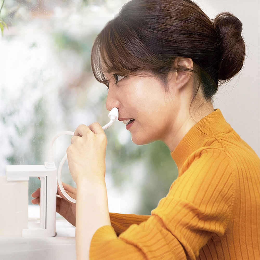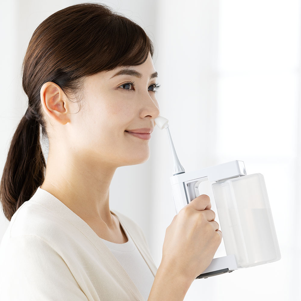 鼻うがいって痛いものだと敬遠していませんか。このハナオートは体液に近い食塩水と安定した水流で、ウイルスなどの付着しやすい「上咽喉・鼻腔」をしっかり洗浄。2種類のノズルで手元のコントロールがしやすく、お手入れも簡単なので無理なく毎日の習慣に!鼻うがいなら、ウイルスやアレル物質が付着・滞留しやすい「上咽喉・鼻腔」をしっかり洗浄できます。