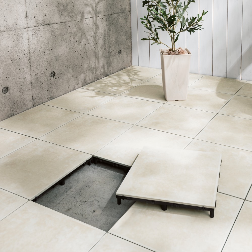 ◆ジョイント式タイルデッキは、はめ込むだけ。