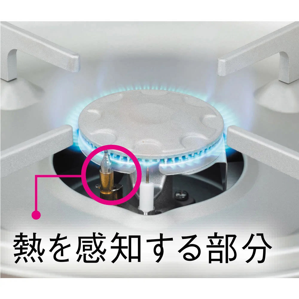 立ち消え安全装置が付いているので、調理中に吹きこぼれで火が消えてしまっても自動でガスを遮断してくれます。