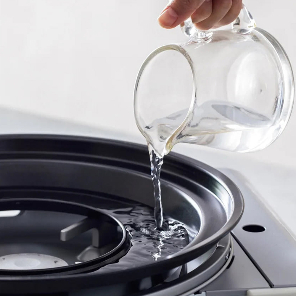 【焼き肉プレート・受け皿】プレートの下に注いだ水が煙を抑えます。