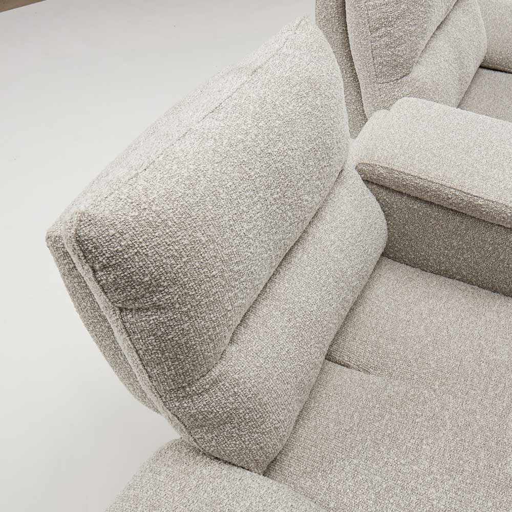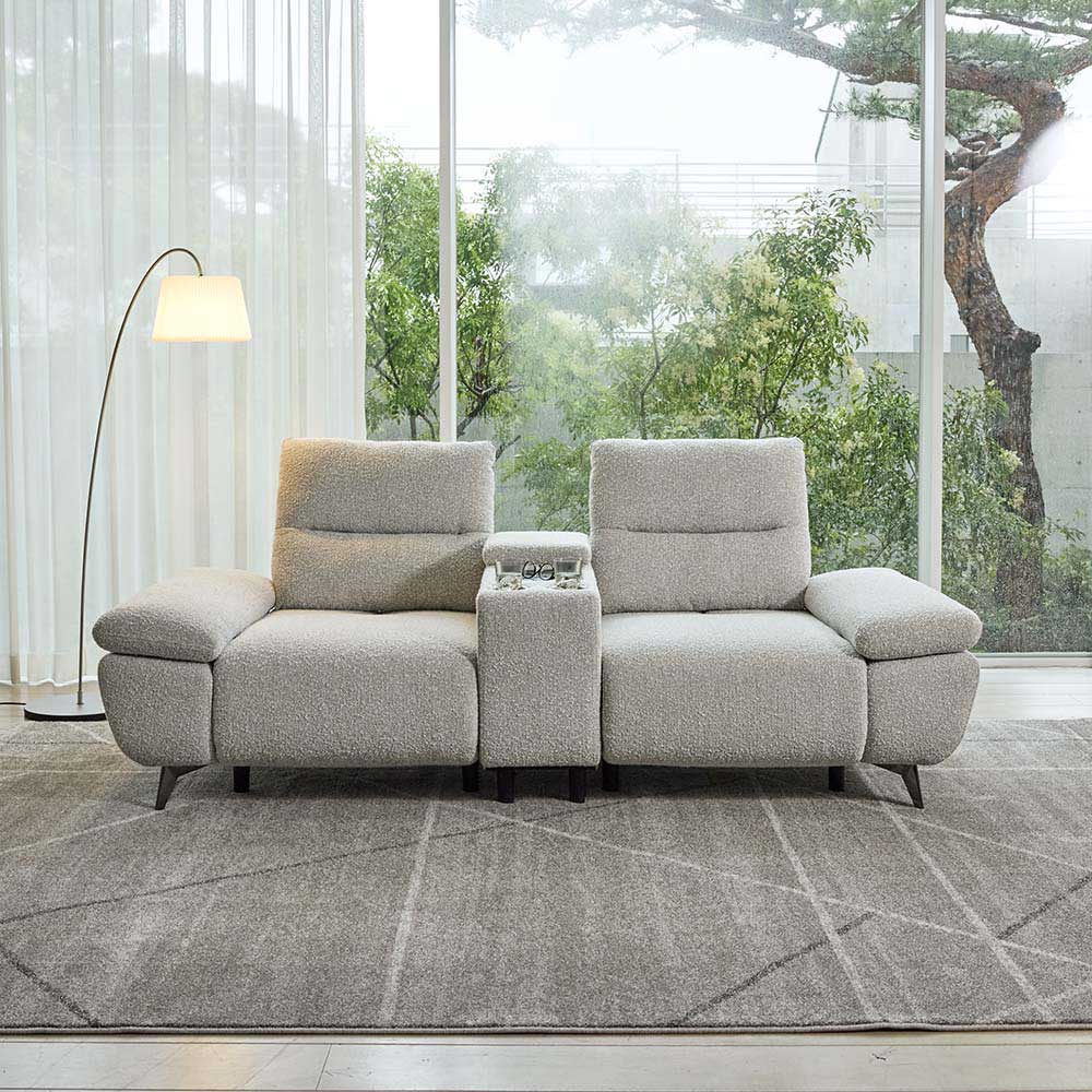 他のインテリアを邪魔しないデザインと色合いが特徴のソファ。生地感はブークレというトレンドを抑えた立体感のある生地を使用しています。ぜひお試し下さい。センターテーブルでくつろぎの幅が広がる