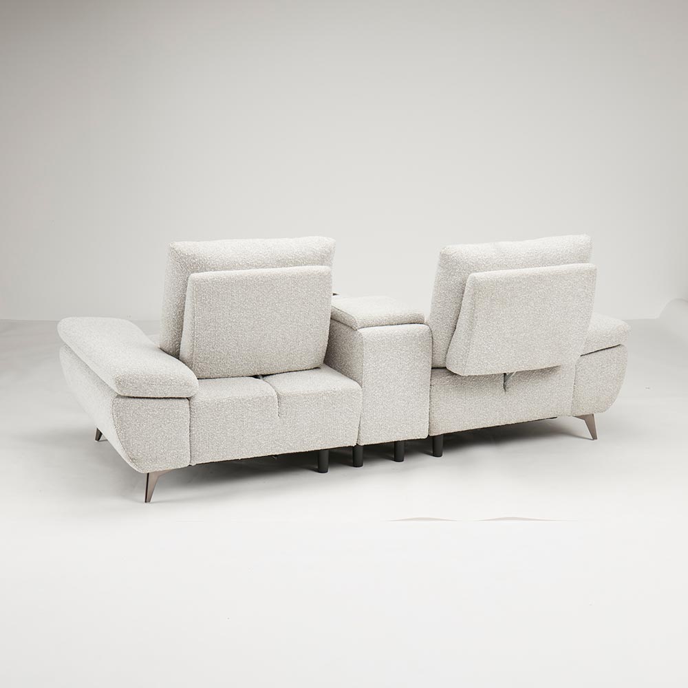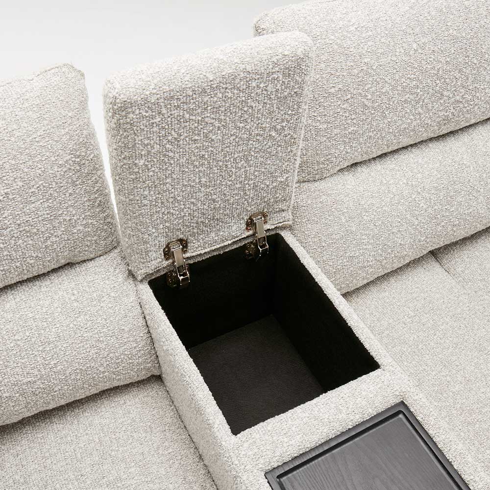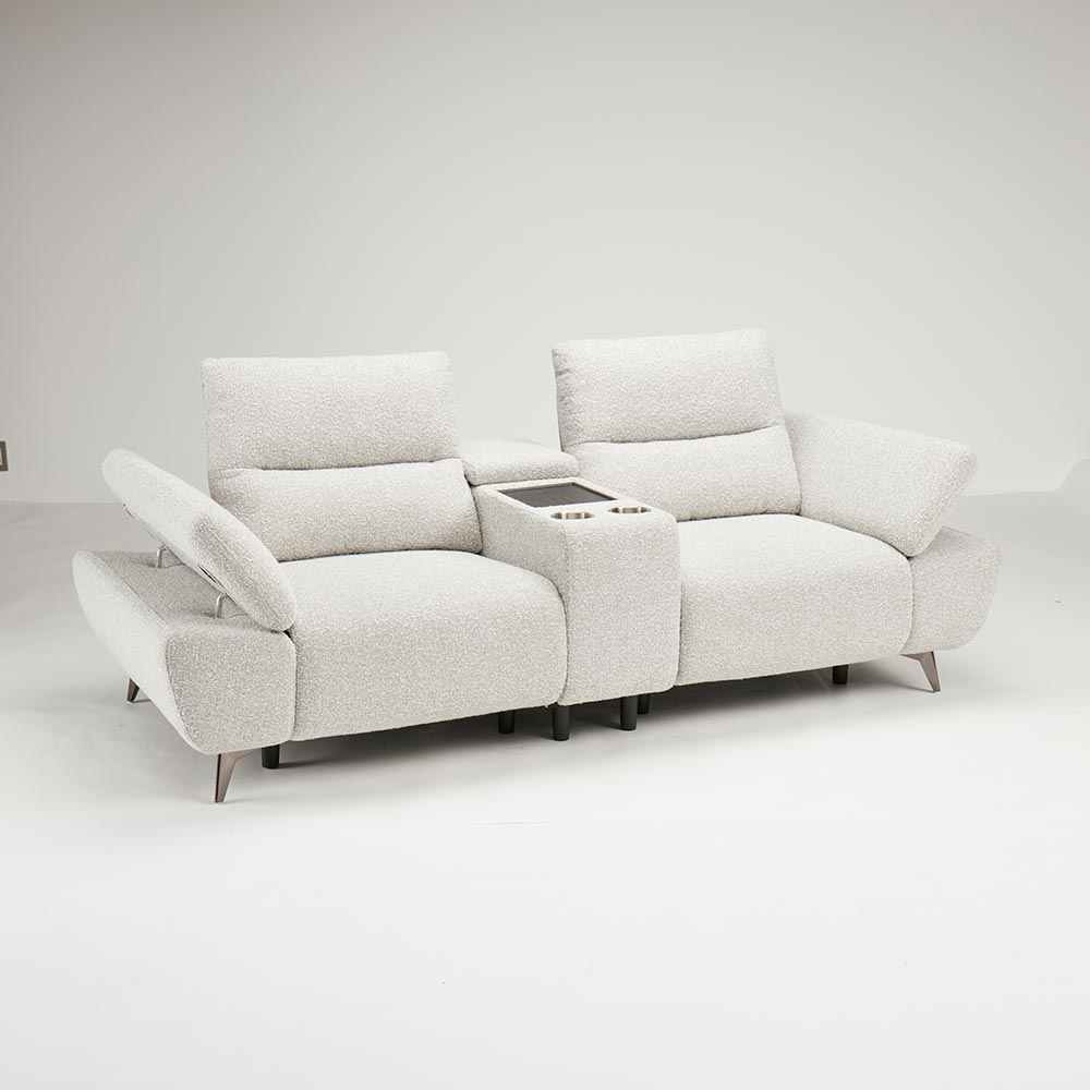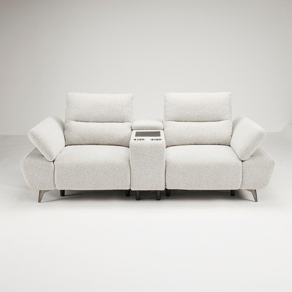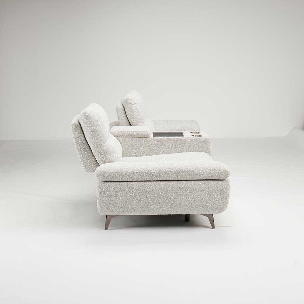 まるでシアタールームにいるかのような気持ちにさせてくれるソファには、センターテーブルがついています。センターテーブルの後方にはコンパクトな収納庫がついています。お気に入りの本などをしまっておくのに便利です。テーブルは使いやすいちょうど良い大きさで、前方にはカップホルダーがついています。HOUSE STYLINGストア限定のソファ