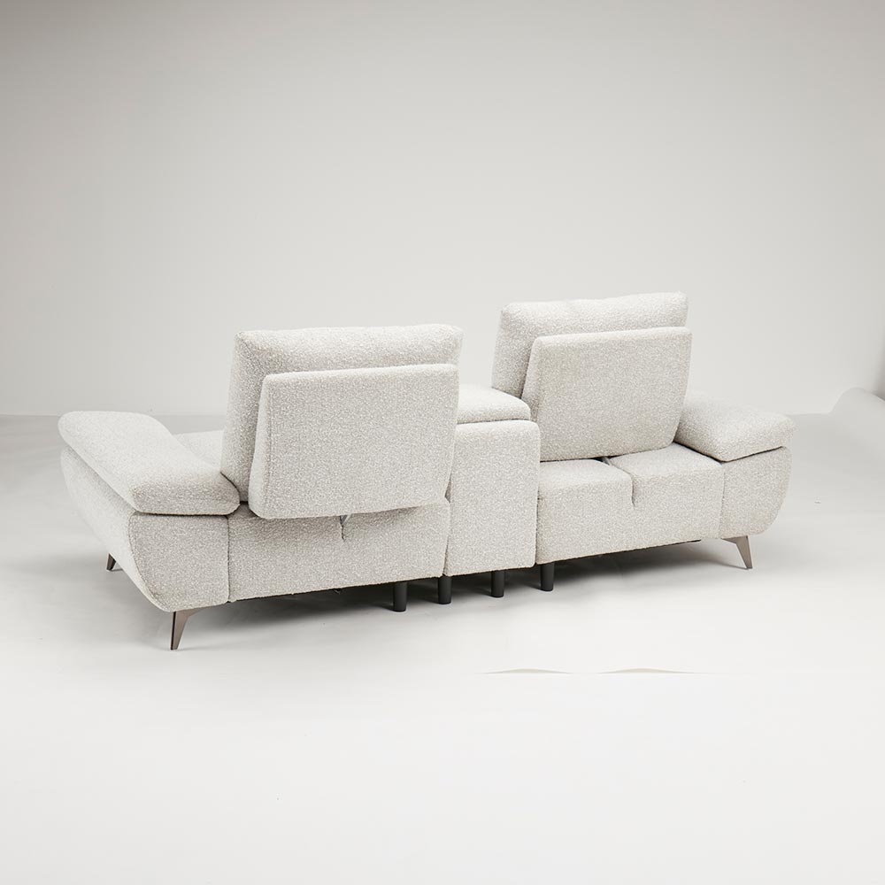 まるで高級車のシートのようにくつろげるソファ。左右個別で変えられる背もたれで、それぞれ格別のくつろぎ姿勢を叶えます。ソファの背もたれは柔らかく、座面はしっかりとしたソファ。奥行が変えられる新しいソファ