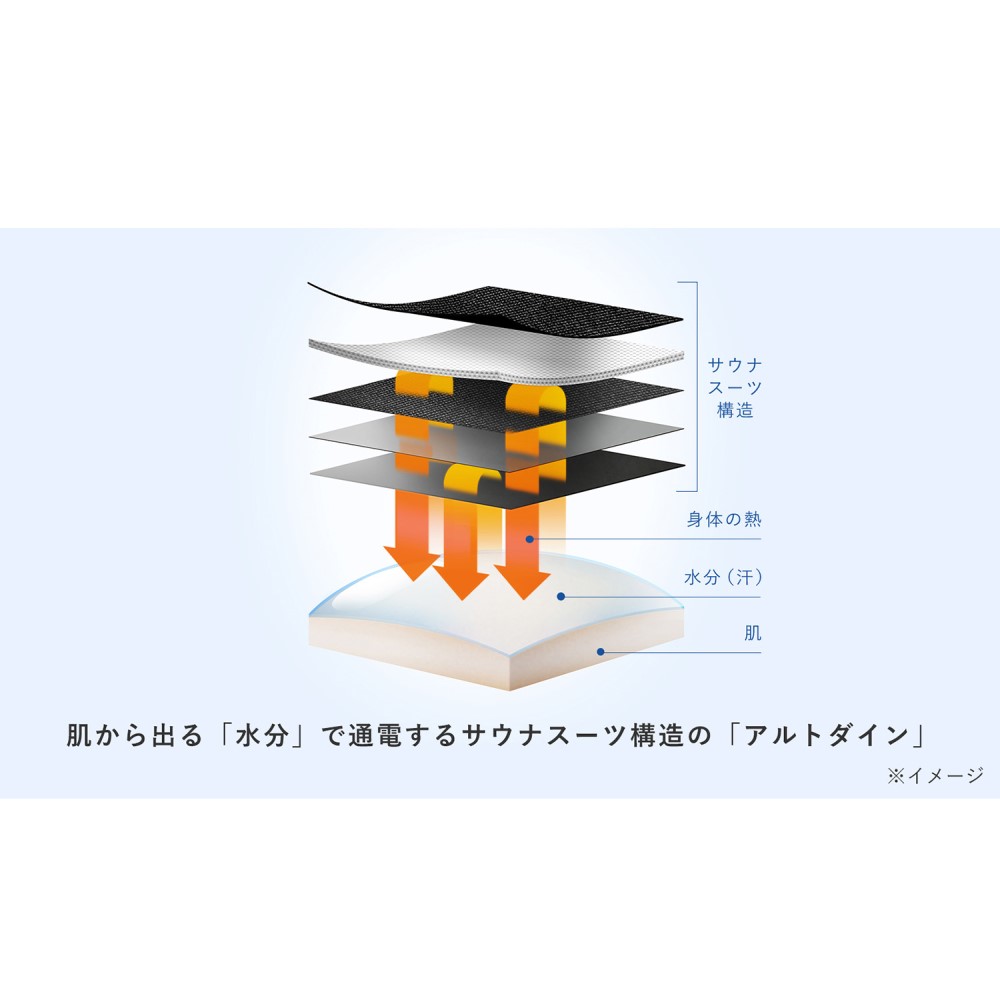 ■素材:表地(表)…ポリエステル86・ポリウレタン14%、表地(裏)…スチレン・ブタジエンゴム、裏地…ポリエステル94・ポリウレタン6%、電極部…ポリウレタン、プレート樹脂…ナイロン樹脂、通電部…銅合金、センターパーツ…シリコーン樹脂