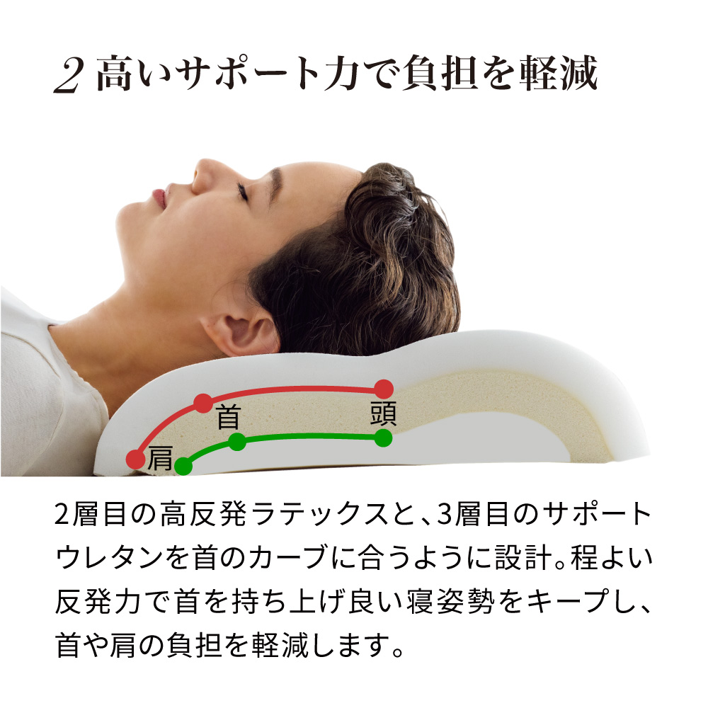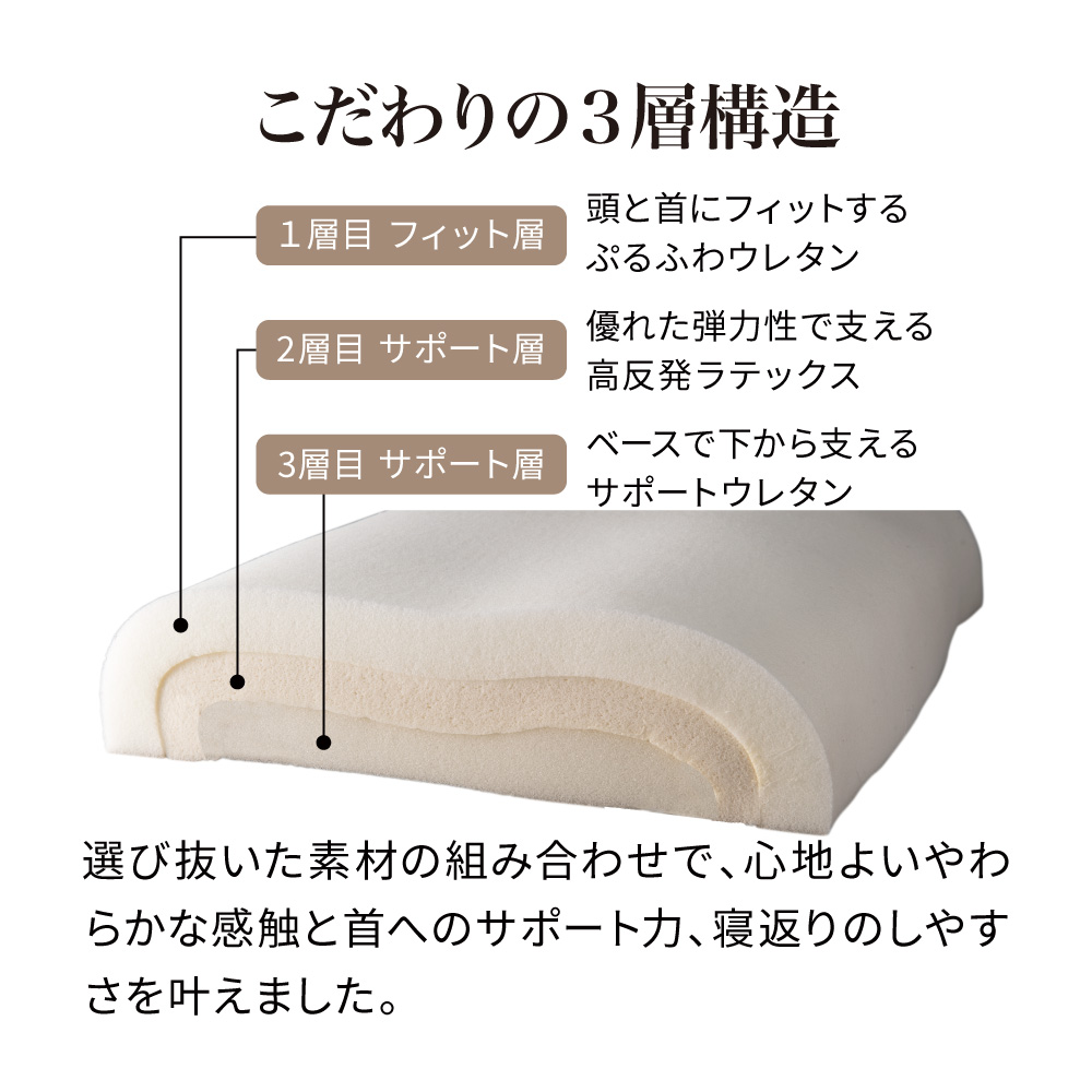■素材:[枕本体]側地…ポリエステル100% 中素材…(1層目)ウレタンフォーム(2層目)ラテックス(3層目)ウレタンフォーム [ピローケース]…綿55・レーヨン45%