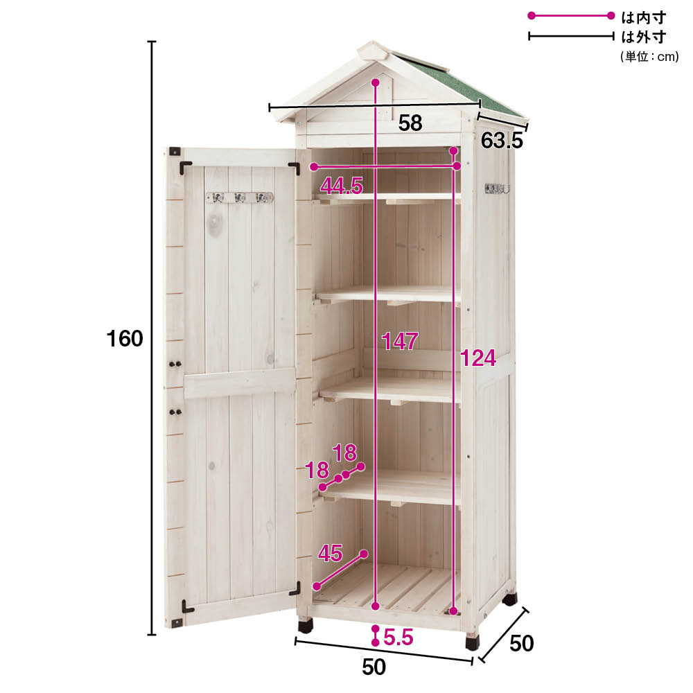 ツールフック付き三角屋根収納庫 幅58cm ソーラーライト付 物置 G87658