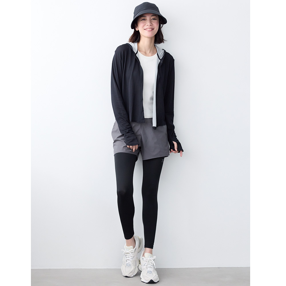 足首までカバーする9分丈。サラッとした接触冷感生地で、スポーツシーンはもちろん、ワンピと合わせて日常着としても重宝します。