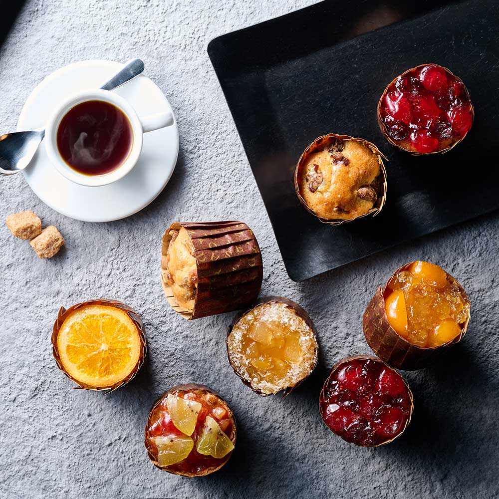 つやつや光るシロップ漬けや、瑞々しいセミドライの果実がごろごろ。