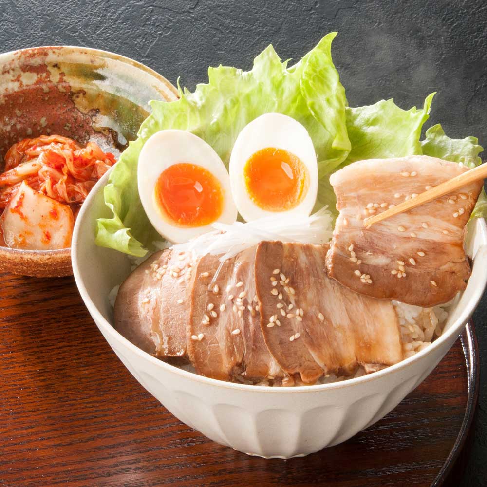 試行錯誤して丁寧に作り上げた、河京(かわきょう)自慢のチャーシューです。素材本来のうま味を感じられるよう、柔らかくジューシーに煮込みました。肉質と脂身のバランスが良い、スペイン産の豚バラ肉を使用しています。
