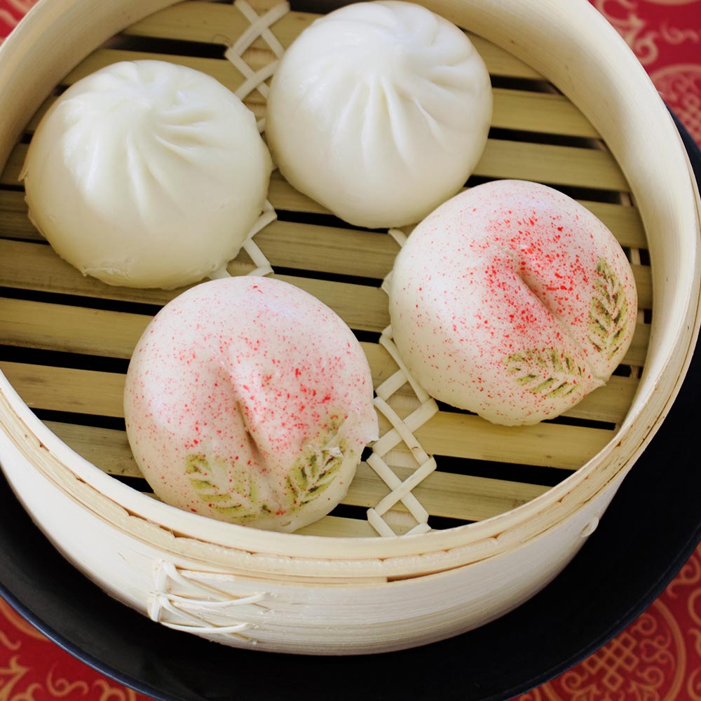 ■ミニ桃まんじゅうは、古来の祝いの席で重宝されてきた伝統の一品。電子レンジで温めてください。
