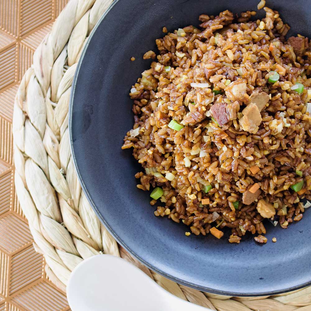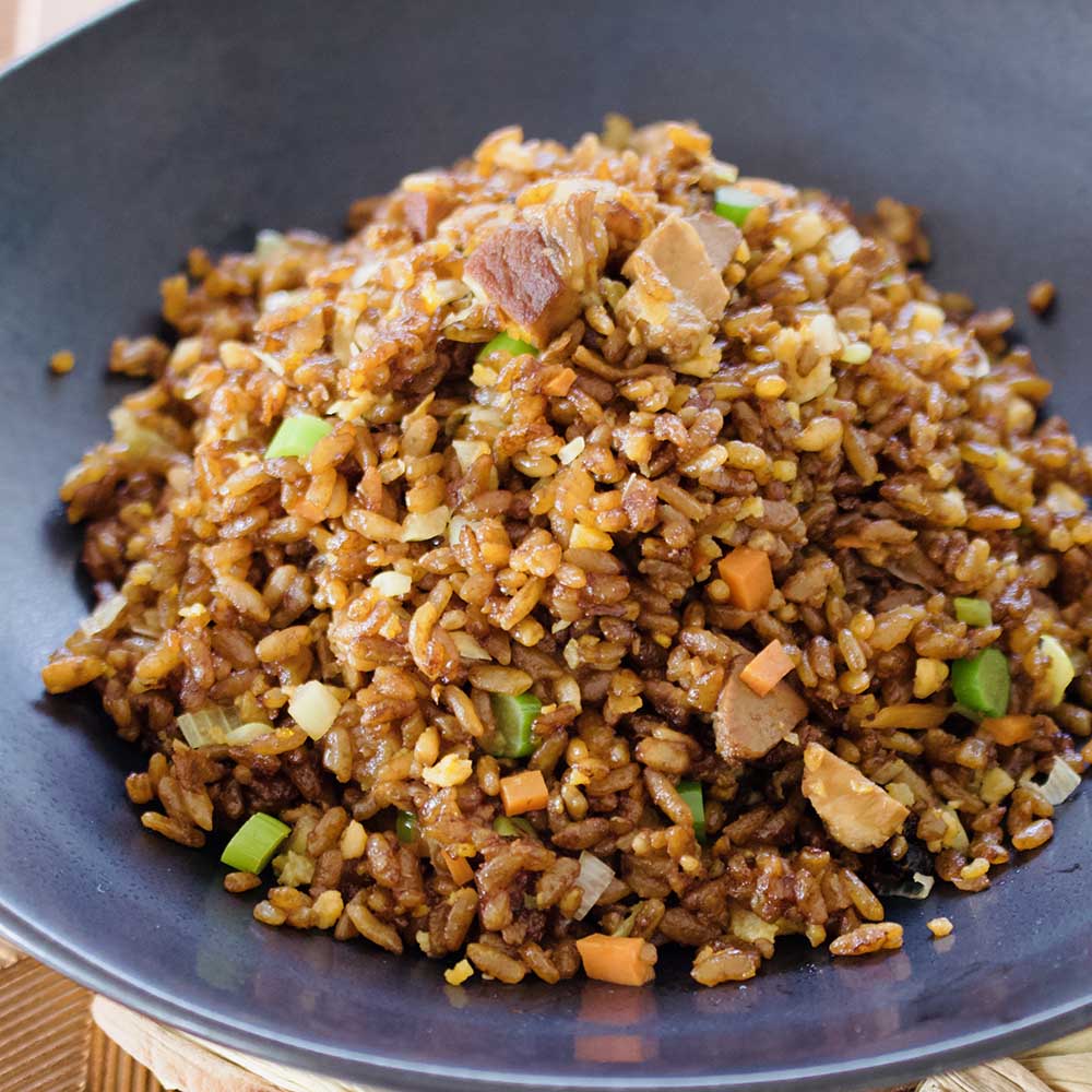 ■黒醤油炒飯は中国たまり醤油のマイルドな甘さと香ばしさが上品な味わいです。電子レンジで温めてお召し上がりいただけます。