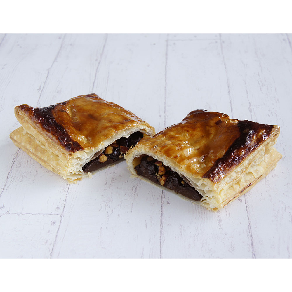 北海道産小麦を使ったパイ生地で、濃厚なチョコレートペーストとローストした刻みアーモンド、ハイカカオのチョコチップを加えたザクザク食感が楽しいチョコレートパイです。そのままでも、トースターで軽く温め直しても美味しくお召し上がりできます。