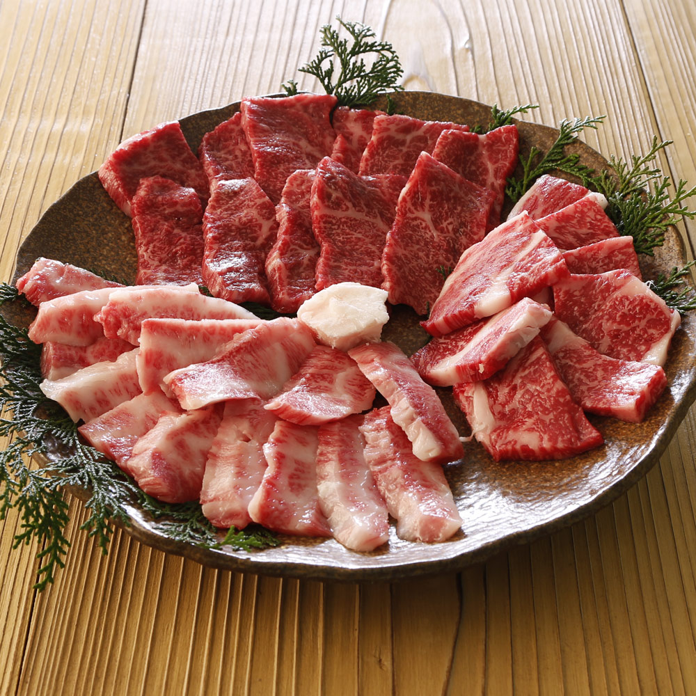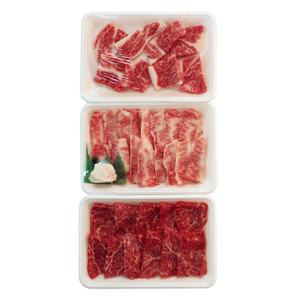徳島県産阿波牛ロース・カルビ・モモ3種盛りの焼肉セット。