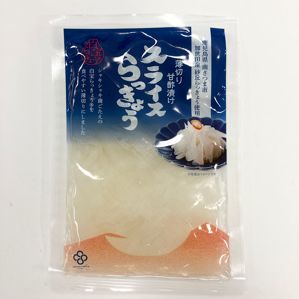 日本で一番長い砂丘地(吹上浜砂丘)で栽培された鹿児島県産砂丘らっきょうを漬け込んでスライス。繊維が細かく実がギッシリと詰まっており、歯ごたえ抜群です。