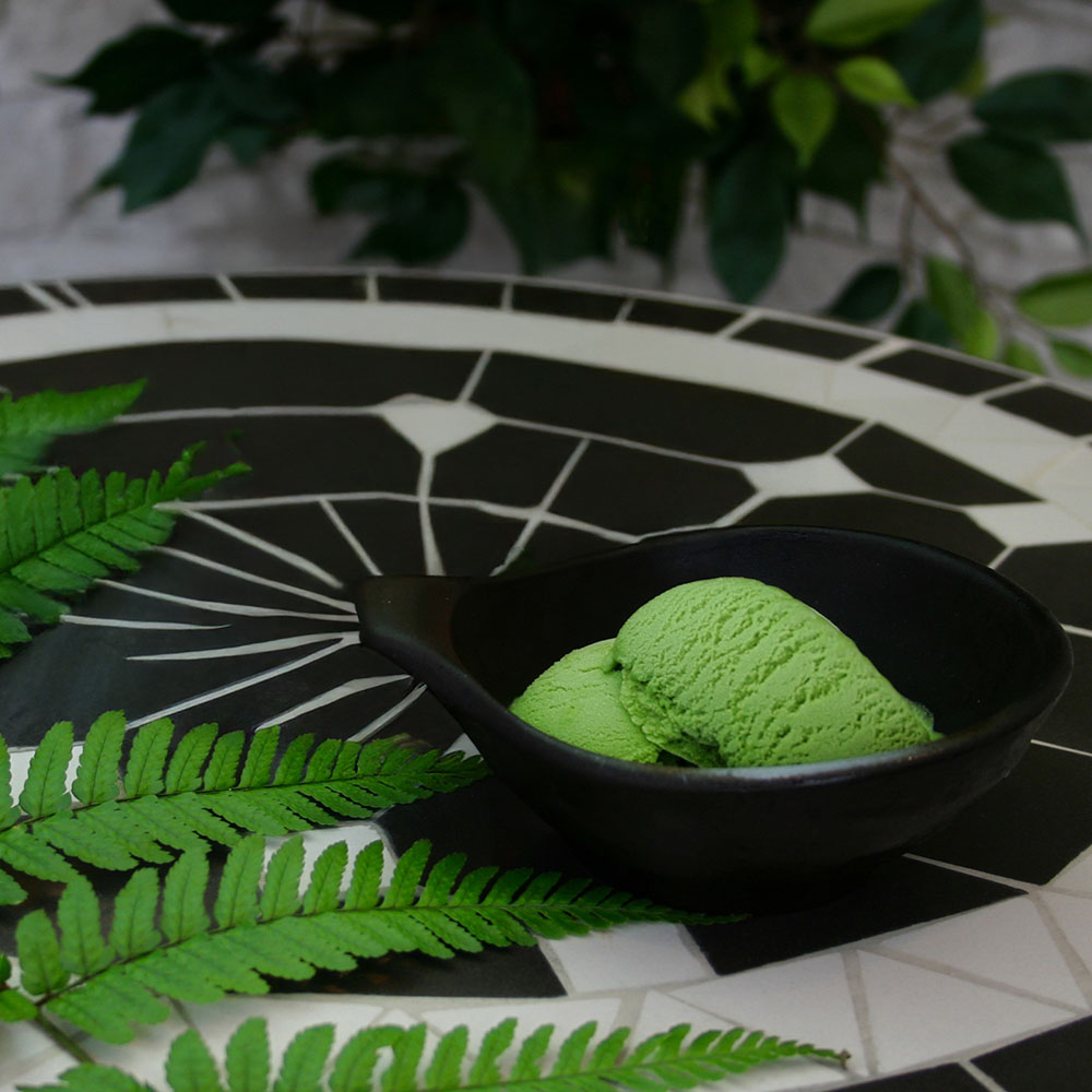 最初のひと口には、爽やかな濃茶の香りとほんのりとした上品な苦味がお口いっぱいに広がり、宇治濃茶アイスクリームの醍醐味を存分にお楽しみいただけます。