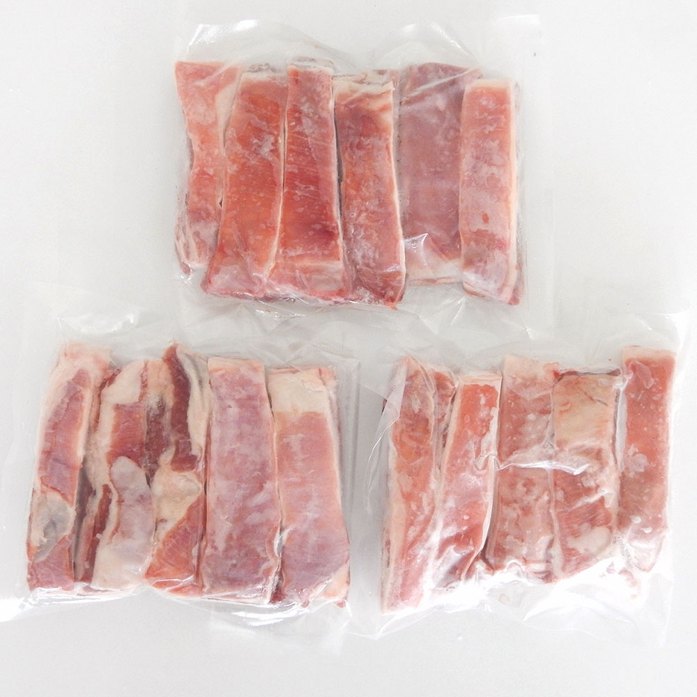 骨付きのバラ肉を贅沢に楽しめる、ラムスペアリブ3パックセットです。各パックには300g(5~7本入り)のスペアリブが入っており、合計900gとボリュームもあります!