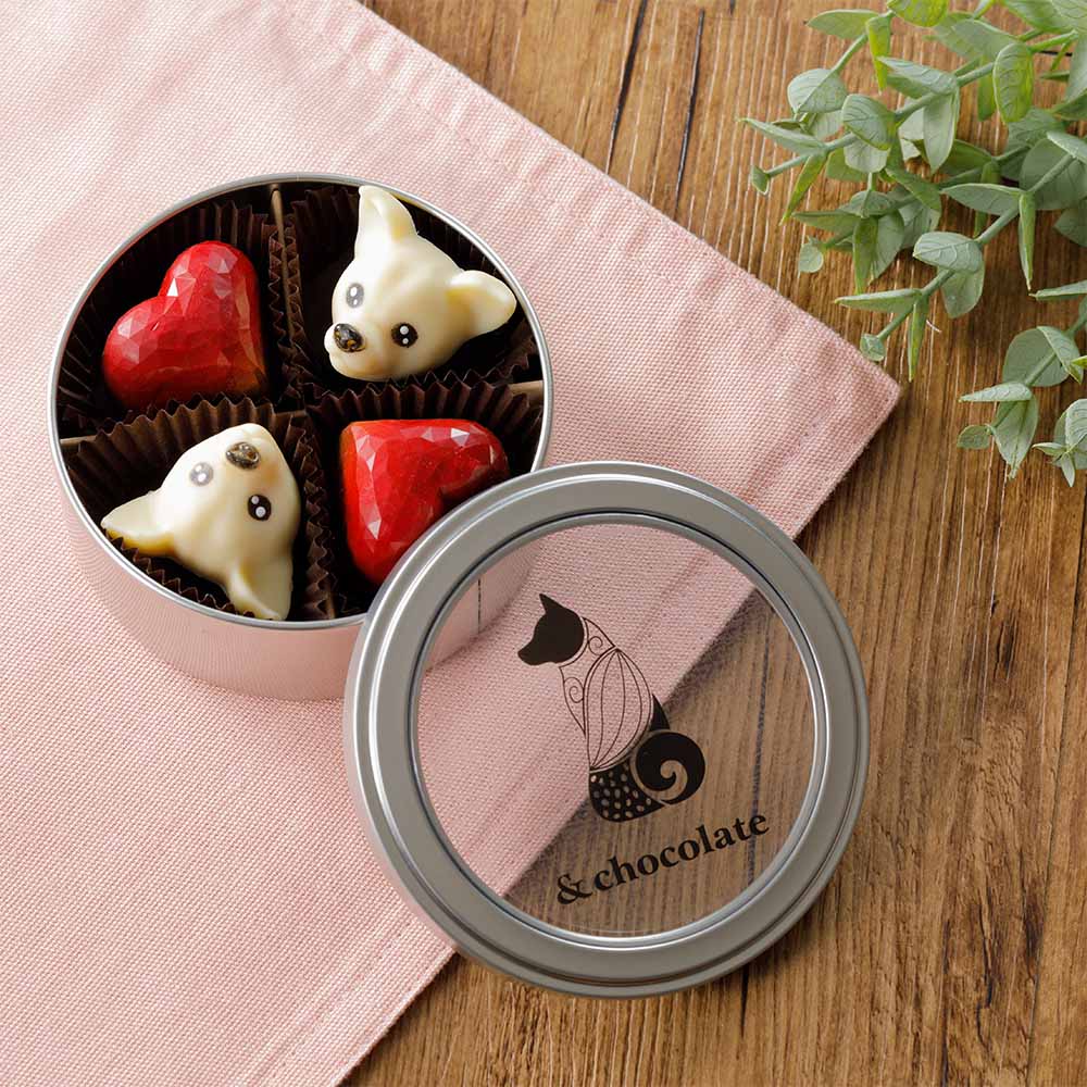 【ディノスオリジナル】「&chocolate」チワワ(毛色:クリーム)&ハート缶 紙袋付き チョコレート スイーツ お菓子 NH1338