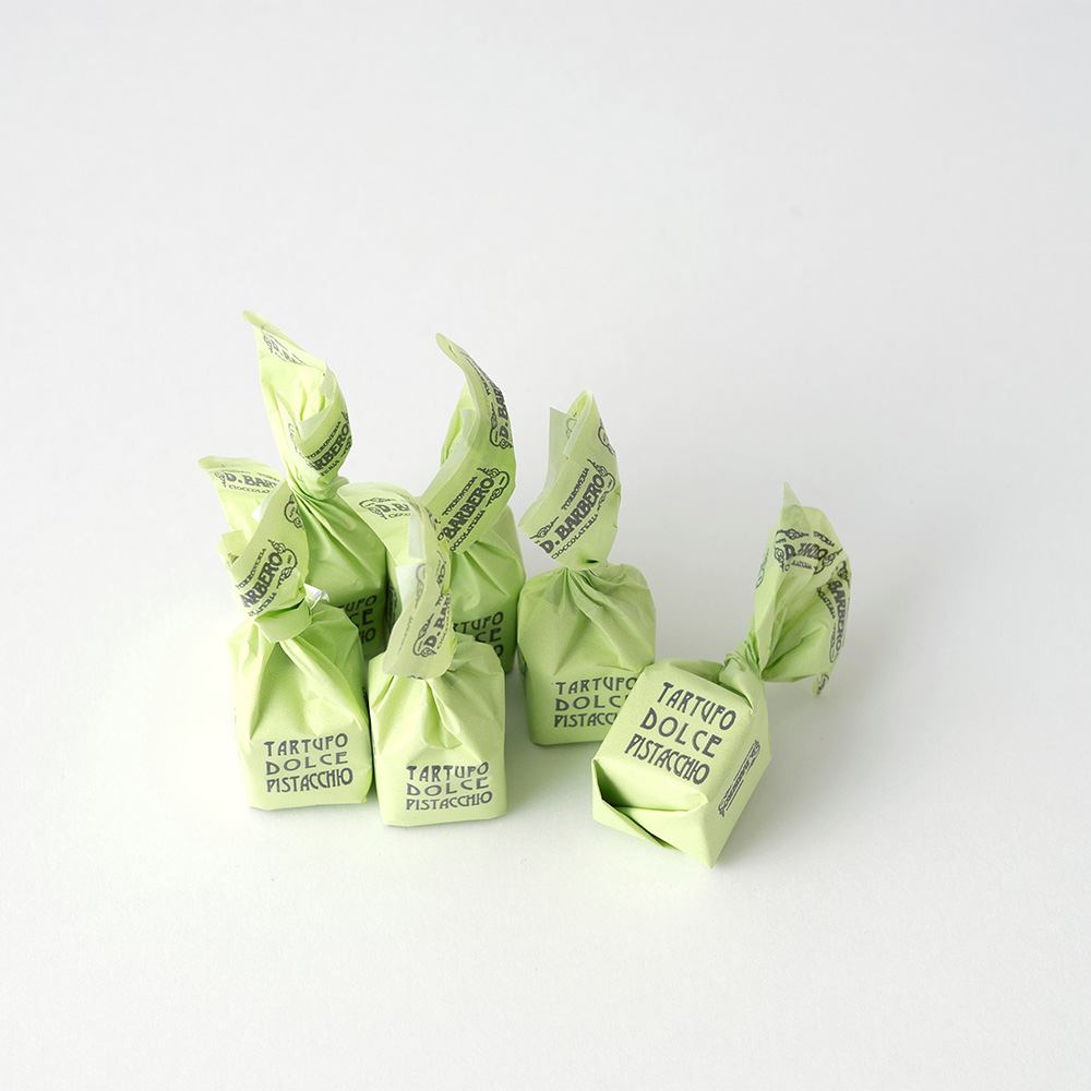 ホワイトチョコレートにピスタチオ、ゲランドの塩で僅かに塩味を付けたトリュフチョコレート。