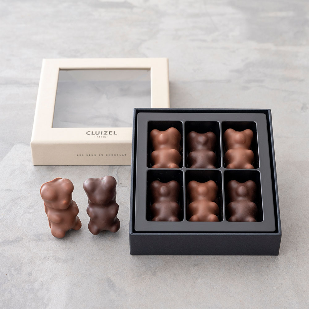 パリの本店で人気の!ふんわりギモーヴをダーク&ミルクで包んだベア型が可愛い6粒のショコラ