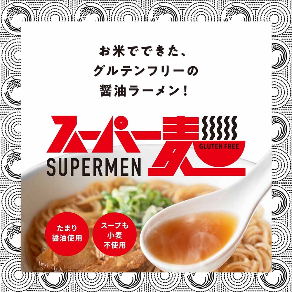 「スーパー麺」は、小麦を食べられなくなった息子のために、その父親が全国を駆けまわり、試行錯誤の末に完成したグルテンフリーヌードルです。