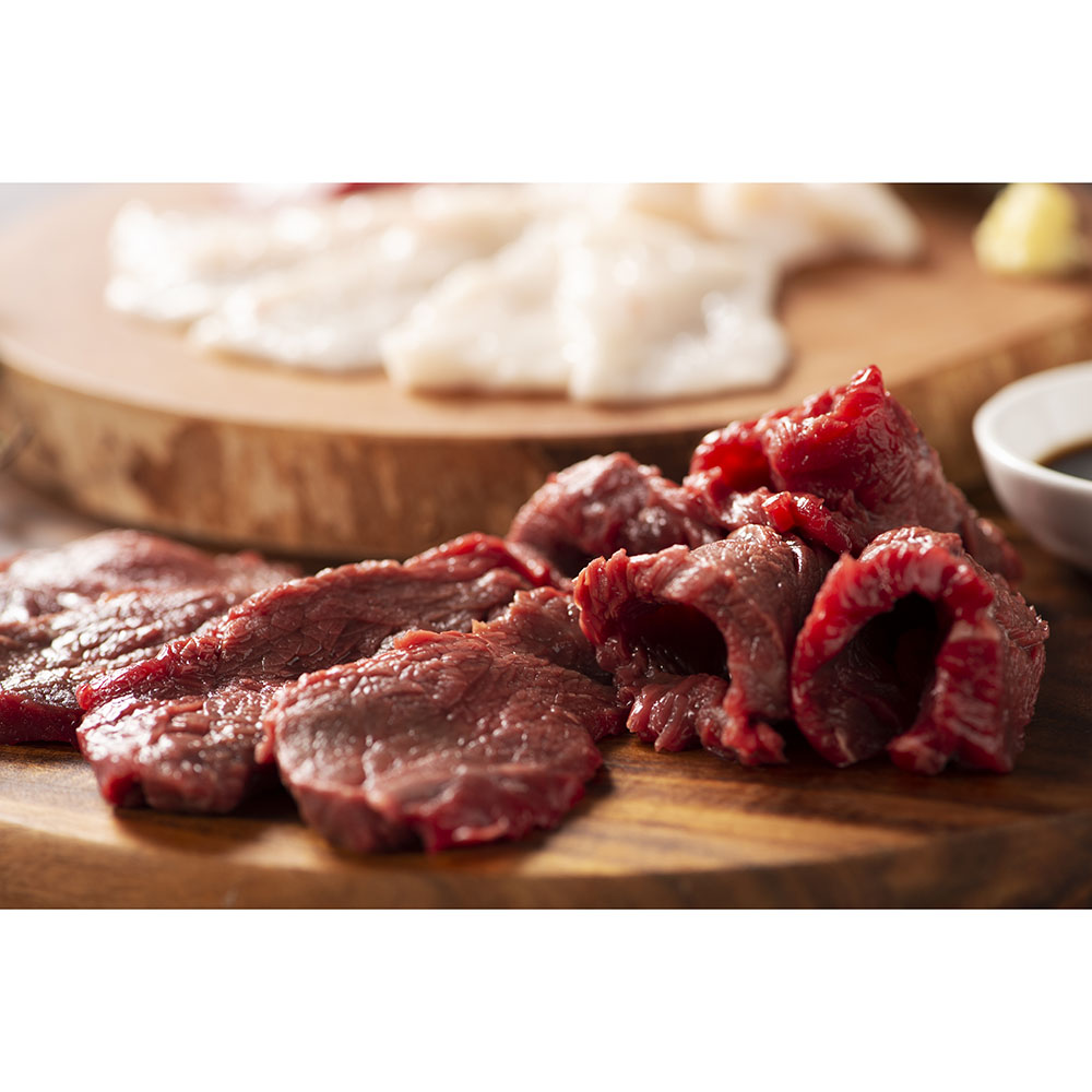 ■調理方法:冷蔵庫で、半日かけてじっくりと解凍してください。流水解凍ですと、数分で解凍いただけます。半解凍ですと、お肉がカットしやすいです。 肉目(肉の繊維)に垂直に切ります。(厚さ2~3ミリ目安)専用のたれに絡めて、お召し上がりください。