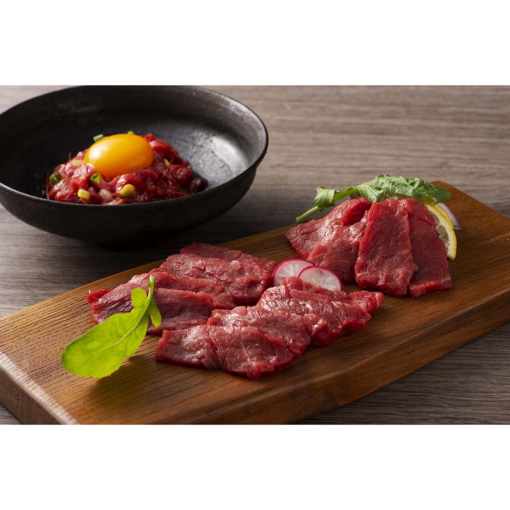 馬刺しの本場・熊本の自社牧場育ち、自社加工の新鮮な馬刺し。肥育・加工・販売と一貫主義の下、創業より培ってきた独自のノウハウで細部にまでこだわり抜いた馬刺しです。