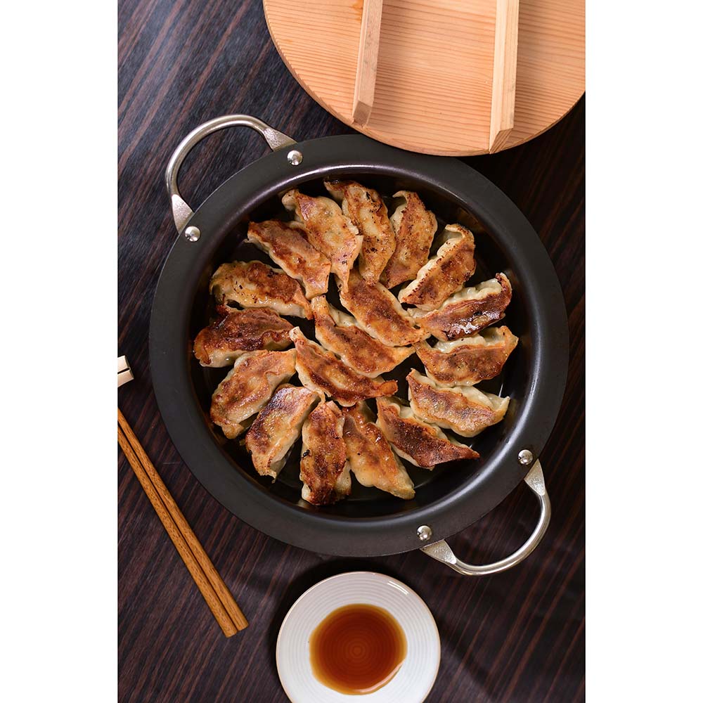 3.フタを取って水を蒸発させ中火のままでゆっくり焼き上げます。焼き面がきつね色になったら出来上がりです。