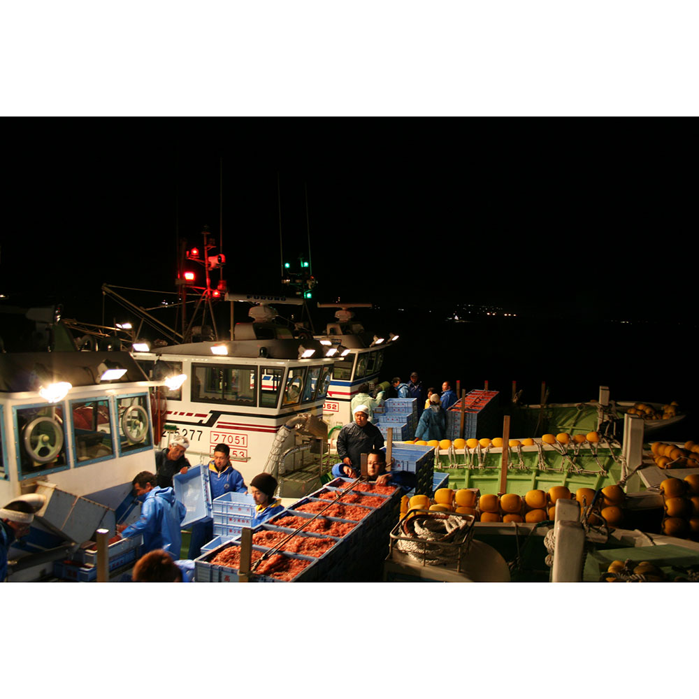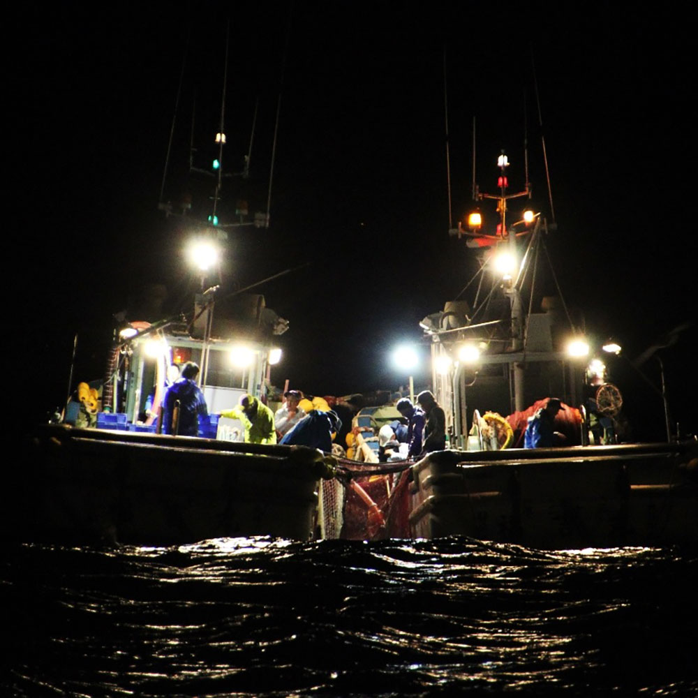 かつては揚繰網方式で漁獲されていましたが、現在では船曳網方式によって漁がおこなわれています。