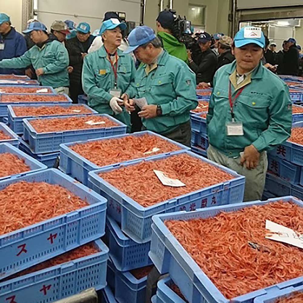 獲れた桜えびはすぐセリに出されます