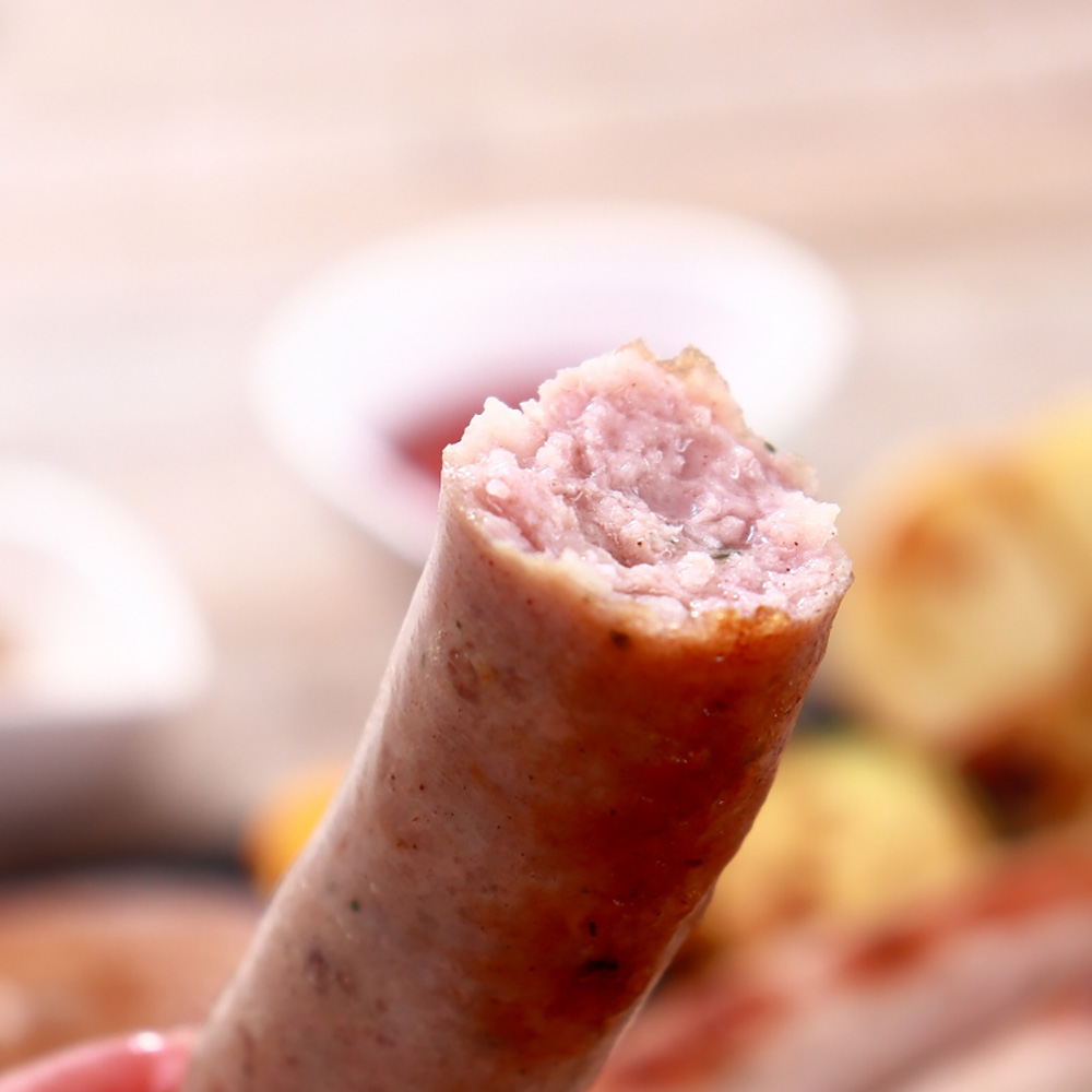 千葉県の銘柄豚「元気豚」を使用した、ハーブ香るウィンナーです。