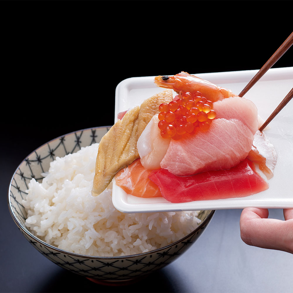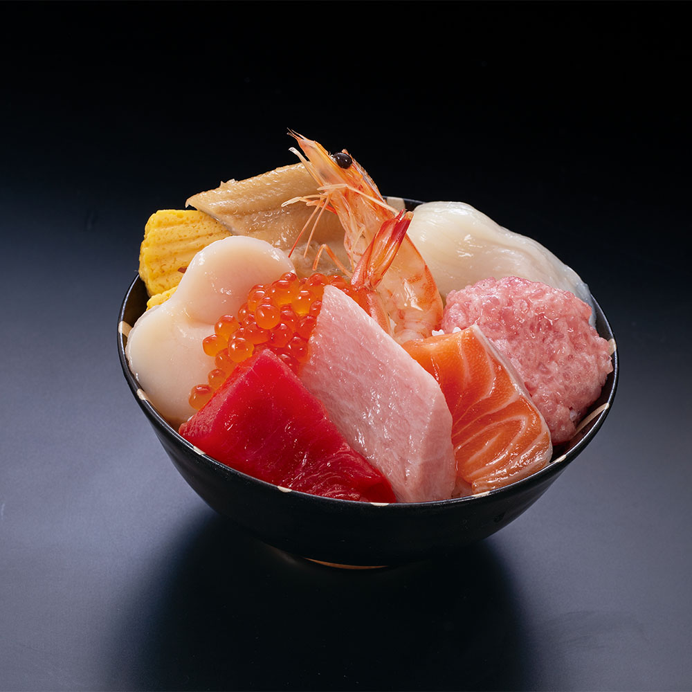 • バラエティ豊かな海鮮丼のネタ、計10種類。