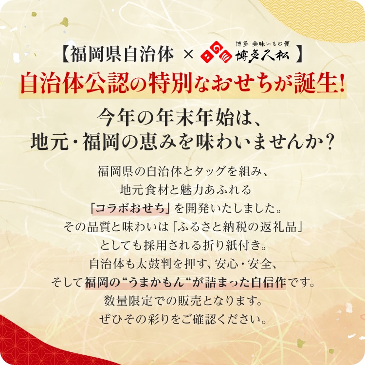 志免町の地元企業と博多久松が作り上げたふるさとおせちです。