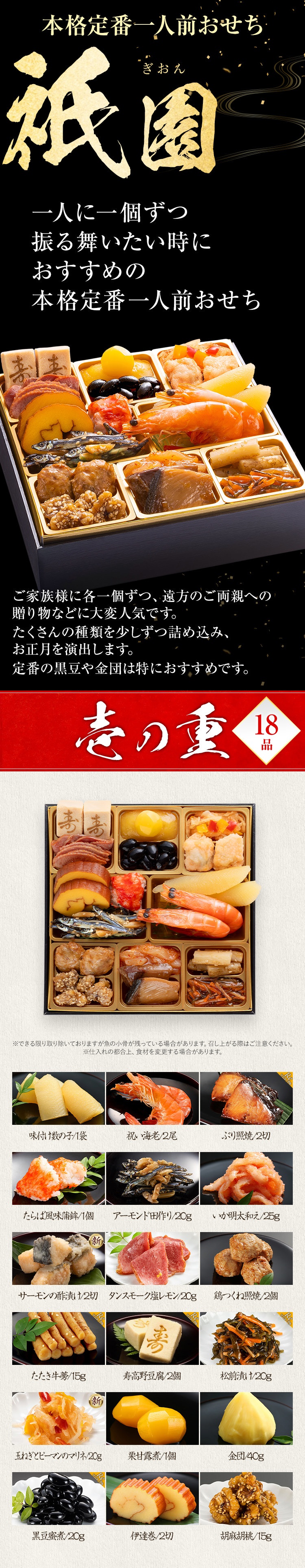 本格定番おせち一人前 『祇園』 6.5寸 1人前 2026年新春おせち 配達日時指定可 【送料無料】【12月31日お届け】