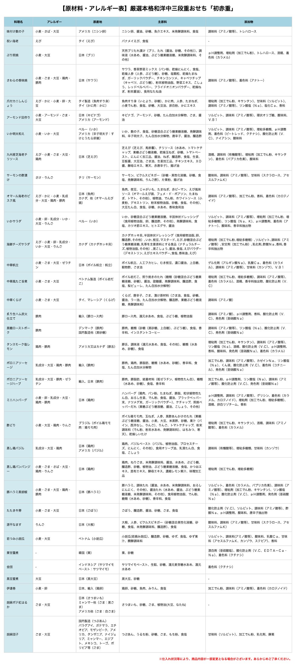 原材料・アレルギー一覧はこちら ※仕入れ状況等により内容が一部変更となる場合がございます。 |
