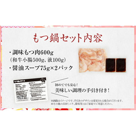 調味もつ肉600g(和牛小腸500g、液100g)×1P 醤油スープ75g×2P |