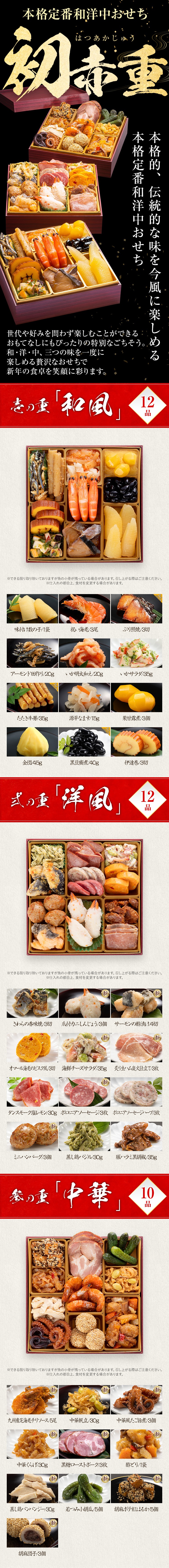 本格定番和洋中おせち 『初赤重』 6.5寸 2~3人前 2026年新春おせち 配達日時指定可 【送料無料】【12月28日~31日お届け】