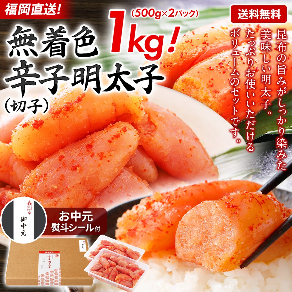 訳あり ≪無着色辛子明太子 切子≫ 500g×2パック 1kg 送料無料 福岡直送 お取り寄せ グルメ 切れ子 めんたいこ 訳あり わけあり ワケアリ 博多 福岡 土産 ギフト プレゼント 海鮮 魚介類 水産加工品