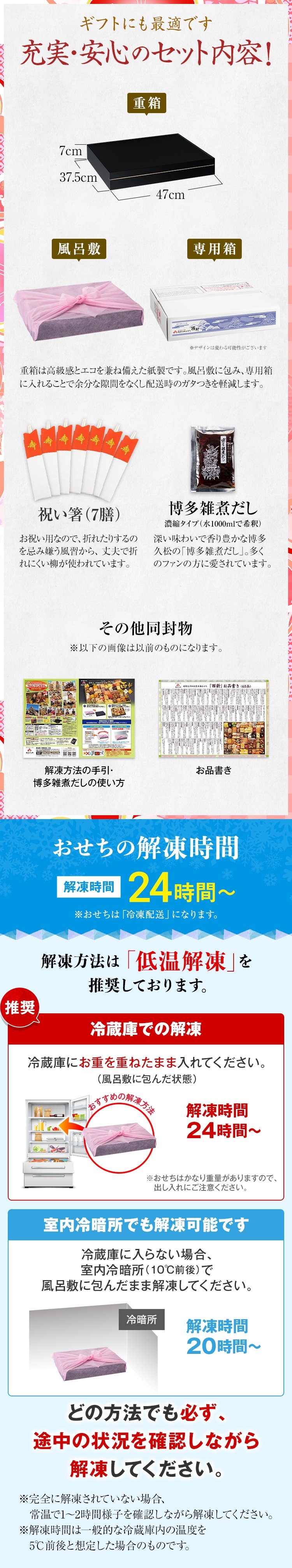 おせちは生ものです。日持ちのしない食材を含め、様々な具材がありますので開封後はできるだけ早めにお召し上がりください。