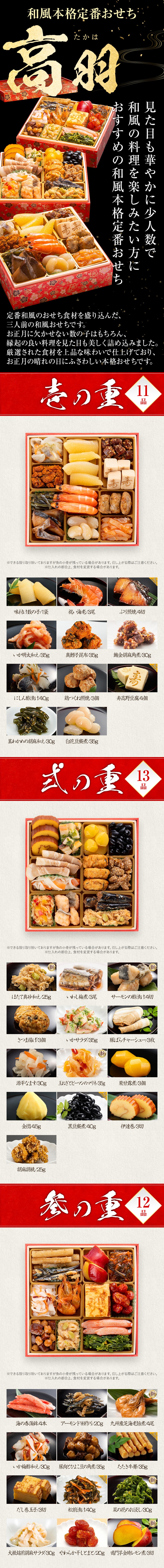 和風本格定番おせち『高羽』 3人前 6.5寸 2026年新春おせち料理 配達日時指定可 【送料無料】【12月31日お届け】