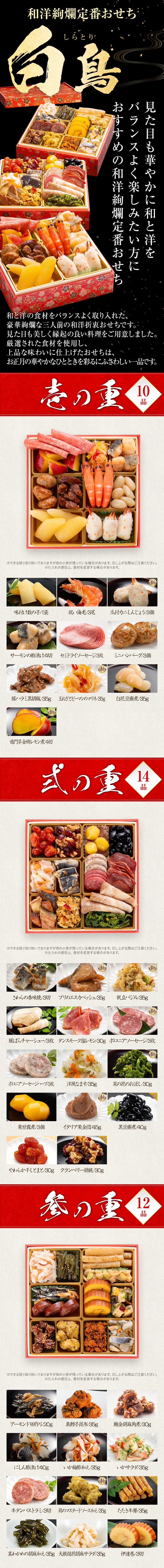 和洋絢爛定番おせち 『白鳥』 3人前 6.5寸 2026年新春おせち料理 配達日時指定可 【送料無料】【12月31日お届け】