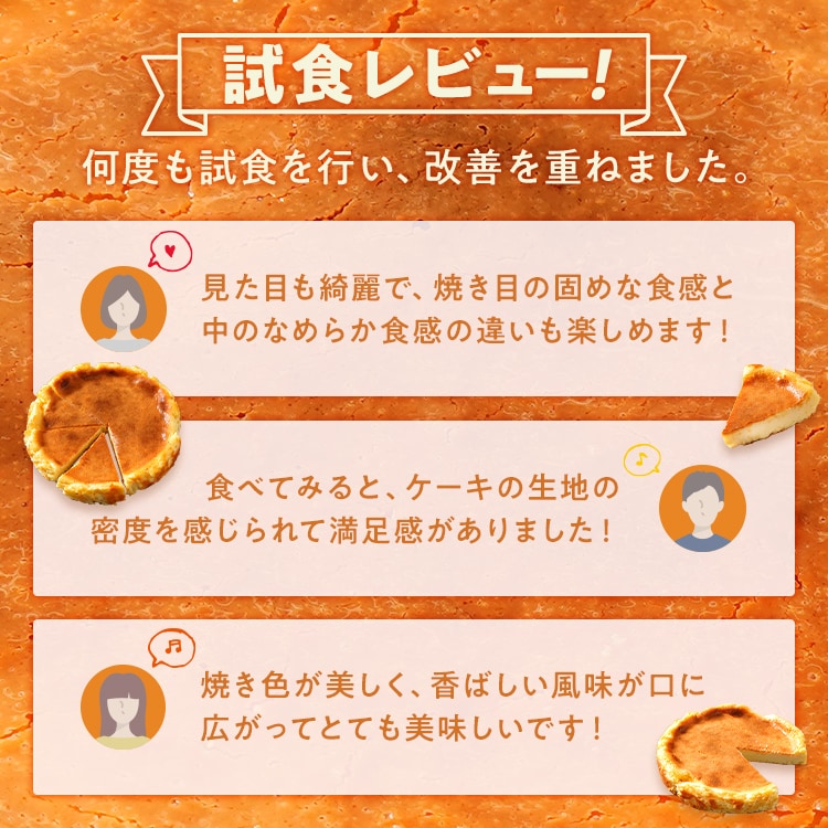 ■原材料名:ナチュラルチーズ(国内製造)、クリーム、グラニュー糖、プロセスチーズ、全卵、加糖卵黄、牛乳、小麦粉、食塩/トレハロース、安定剤(増粘多糖類、ゼラチン)、乳化剤、酸味料、(一部に小麦・卵・乳成分・ゼラチンを含む)